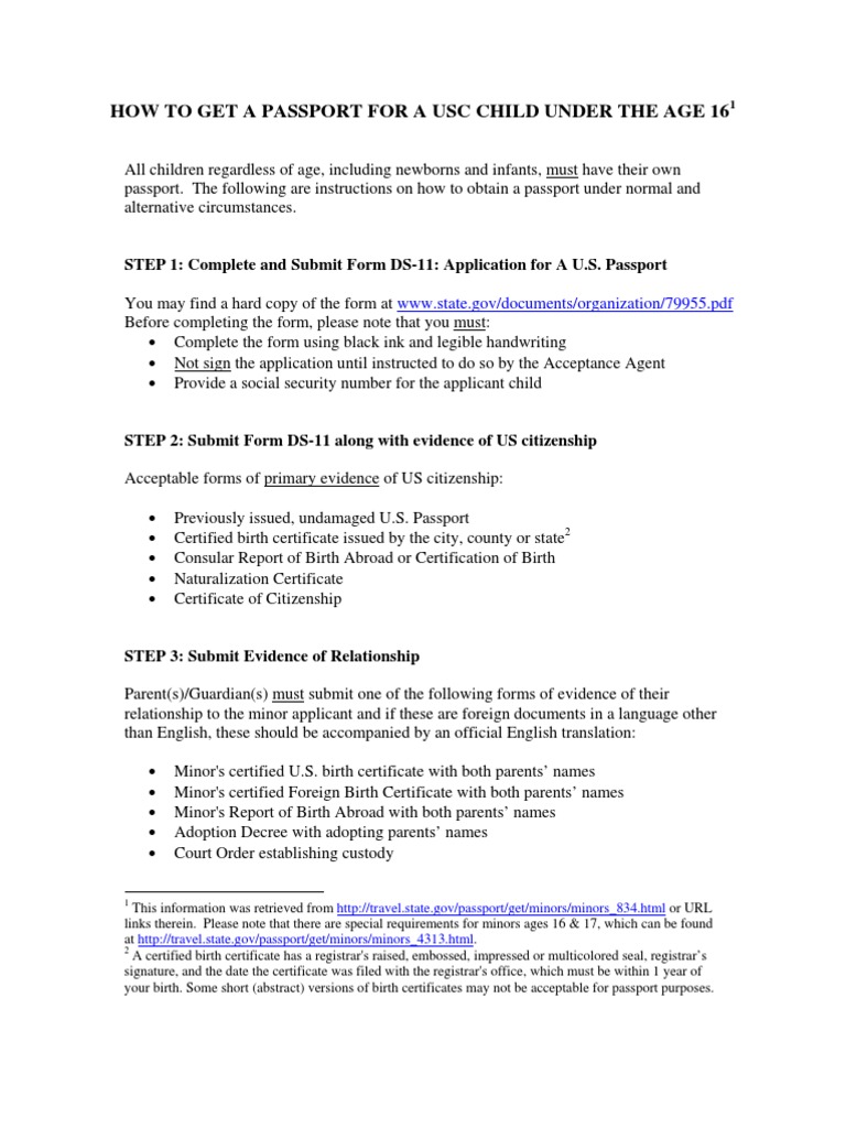 How To Get A Passport For A U S Citizen Child Under The Age 16