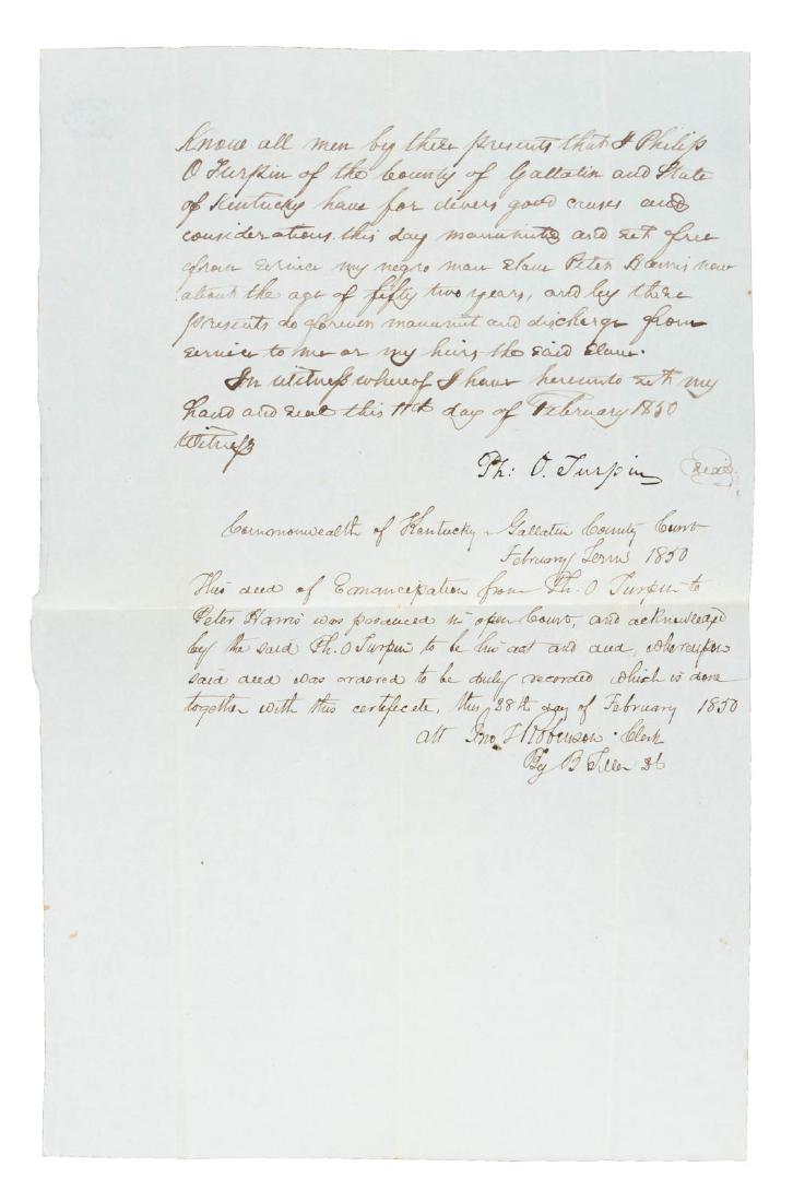 1850 Slave Emancipation Document Kentucky Feb 21 2019 Pba