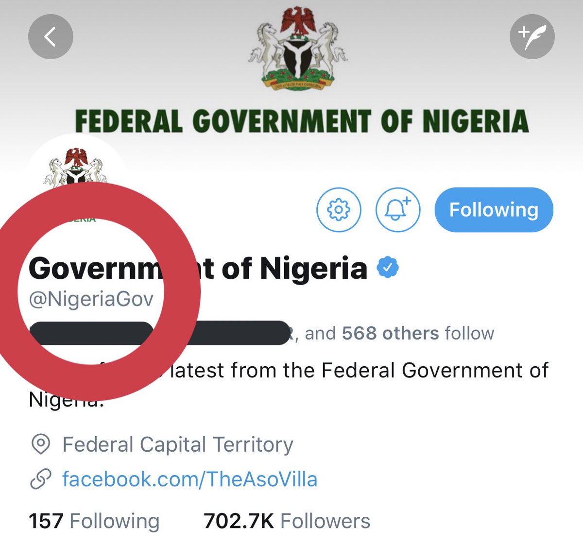 Nigerian Fg Changes Its Twitter Handle From Asorock To