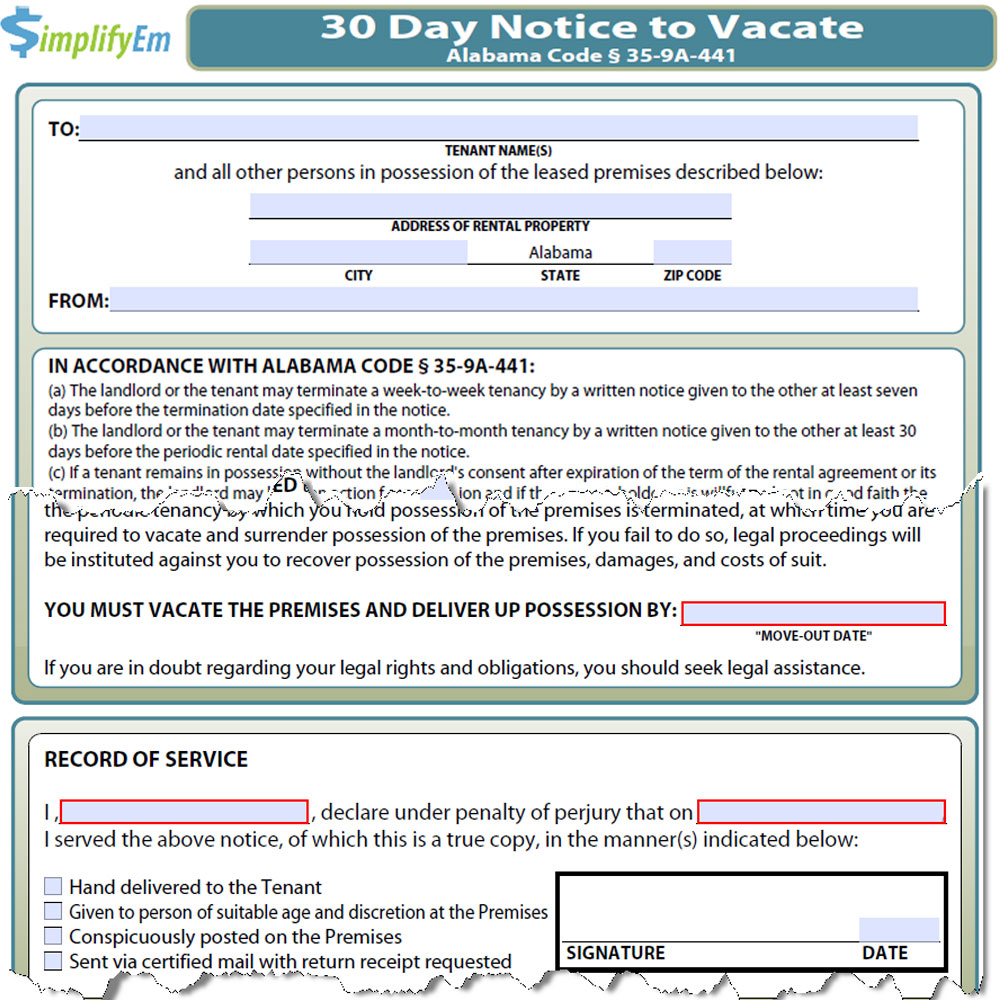 Alabama Landlord Notice To Vacate Simplifyem Com